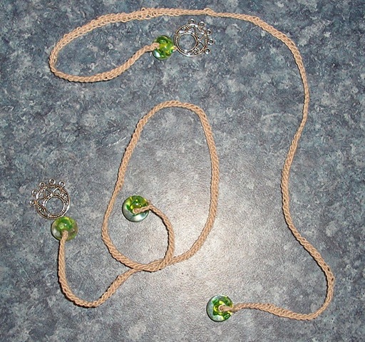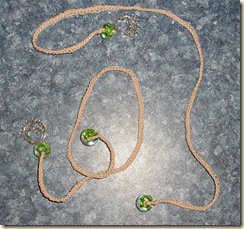 I saw these Book Thongs on CrochetMe and fell in love. The original pattern calls for a tassel on the end, but I'm not a tassel kind of girl, so when I found these beads and pendent's on sale at Michael's for $1 a pack, I knew that I would replace the tassel w/the pendent.